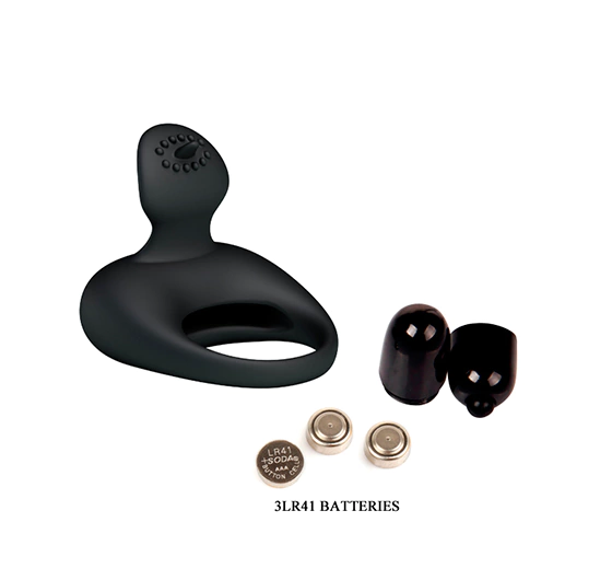 Anillo vibrador con estimulador de clítoris en forma de "lengüita" texturada. Diseñado para estimulacion de clitoris durante la penetreacion, se adapta a distintos tamaños de penes.