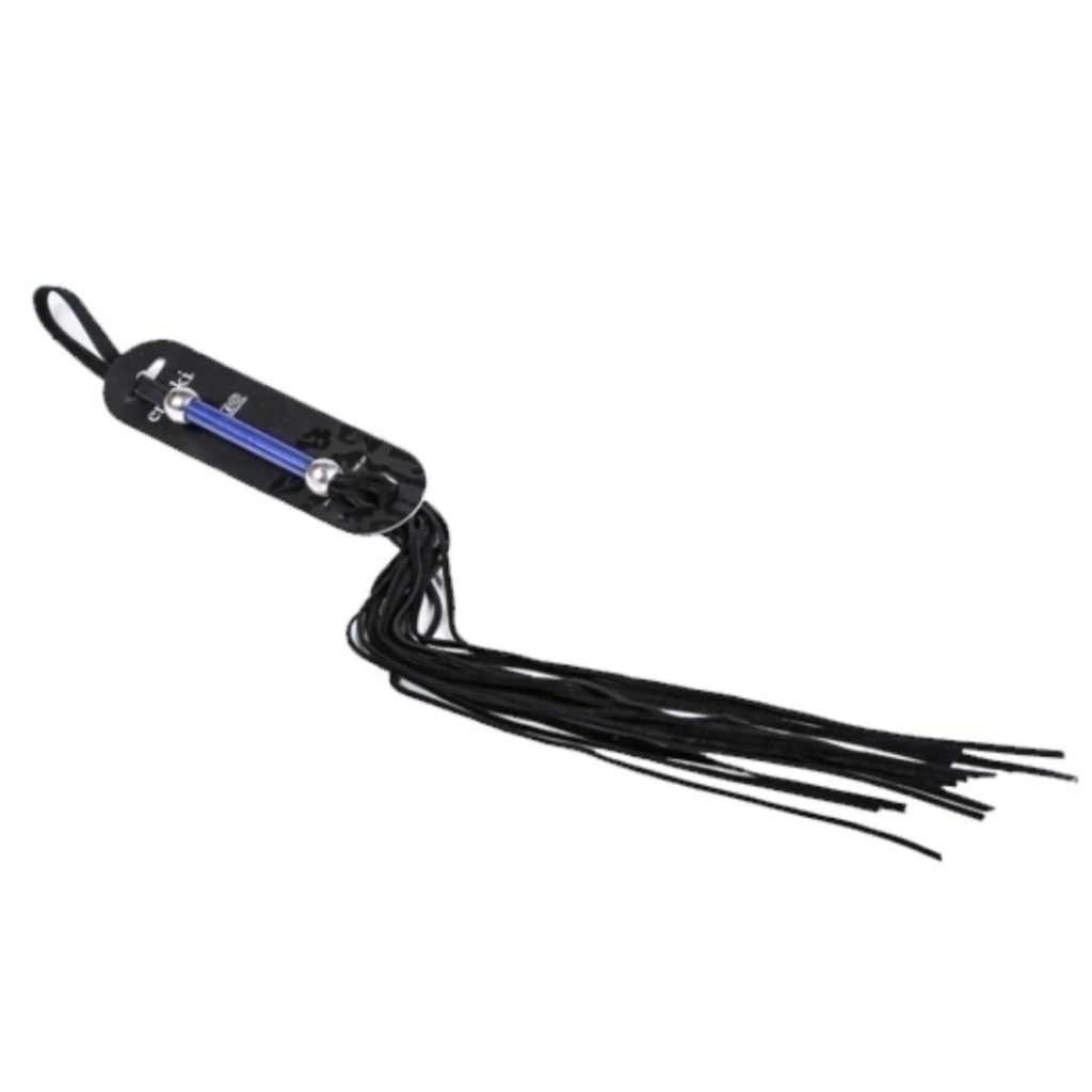 Confeccionado con cuerdas de cuero de alta calidad que ofrecen una gran experiencia sensorial de sumisión. Su diseño incluye un mango de metal pintado a horno, con detalles de purpurina y bolones de metal en sus terminaciones, que proporciona un agarre firme y control total sobre el látigo.